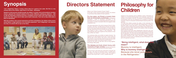 "Just A Beginning" follows a nursery school class for a period of two years. But this is a very unusual class as the children, aged three to five study... philosophy